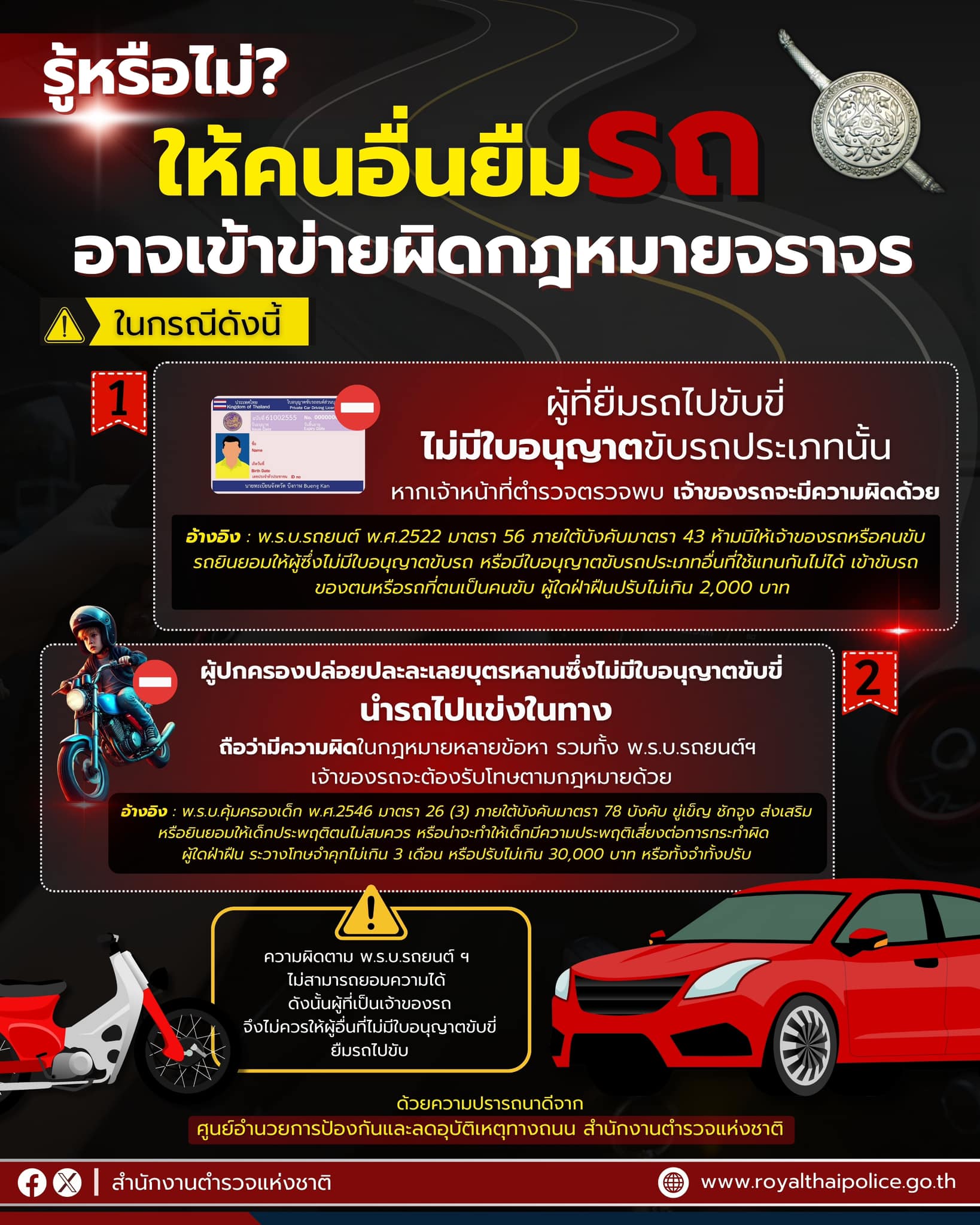 ให้ผู้อื่นยืมรถ อาจเข้าข่ายผิดกฎหมายจราจร เปิดเคสตัวอย่างไม่ได้ขับ แต่ถูกดำเนินคดีศูนย์อำนวยการป้องก…