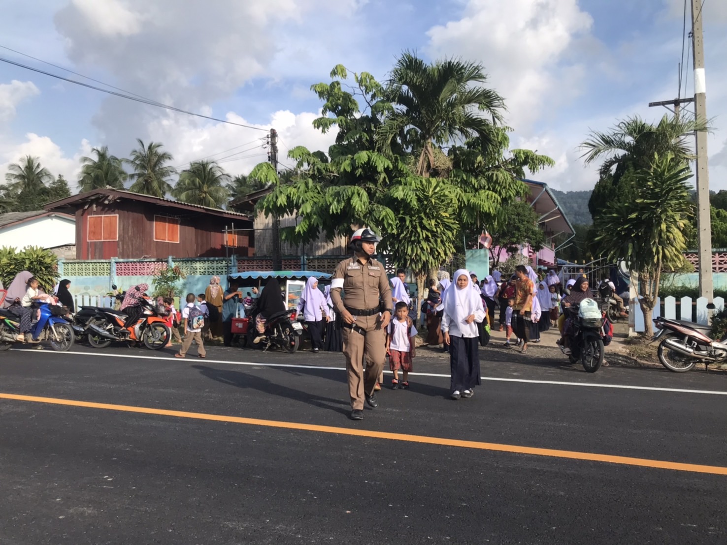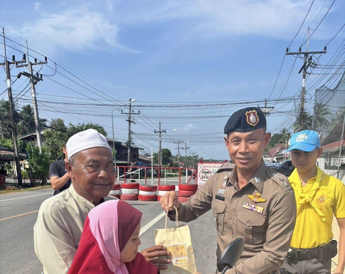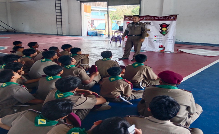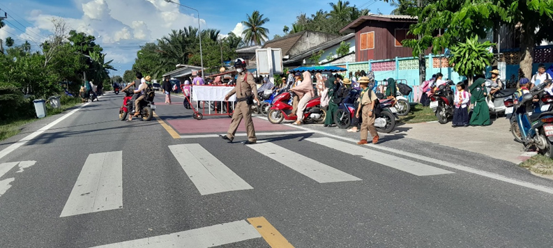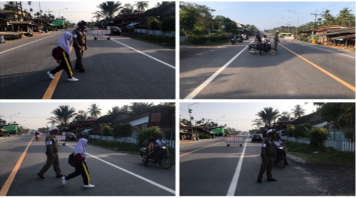 เจ้าหน้าที่ จราจร สภ.กะพ้อฯ ดูแลความปลอดภัย และอำนวยความสะดวกการจราจรแก่นักเรียนโ