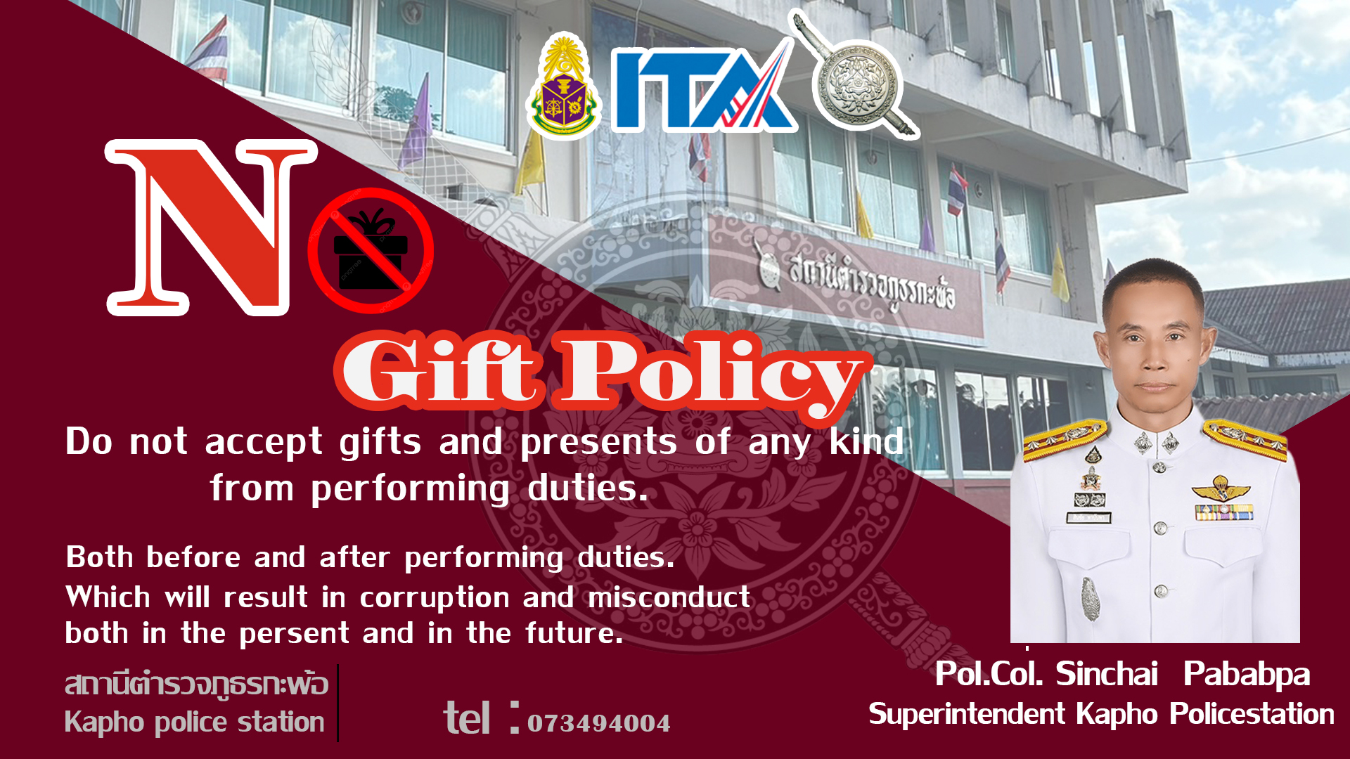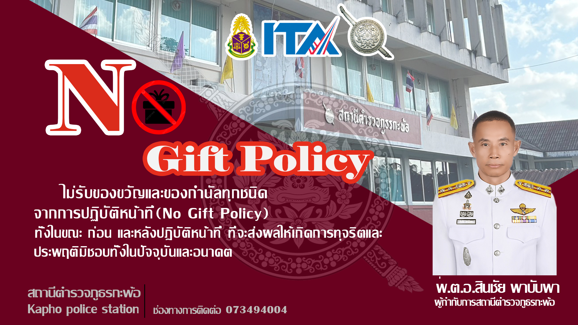 การอบรม เสริมสร้างคุณธรรมและความโปร่งใส โดยเน้นย้ำการต่อต้านการรับสินบน (Anti – Bribery Policy) และการไม่รับของขวัญ ของกำนัล หรือประโยชน์อื่นใด (No Gift Policy)
