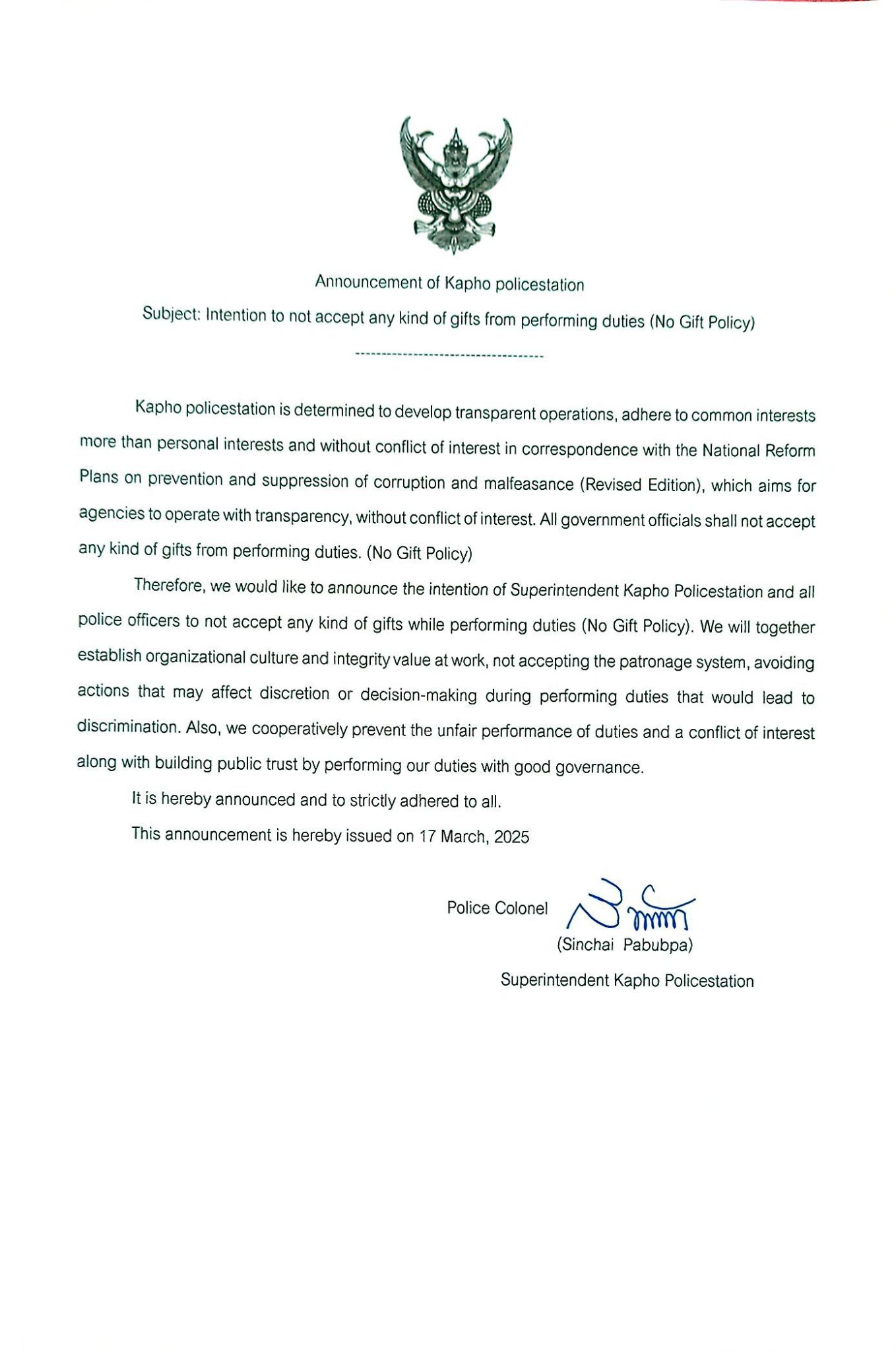 เรียนผู้บังคับบัญชา วันที่ ๑๔ ต.ค. ๒๕๖๗เวลา ๑๔.๓๐ น. ผกก.สภ.กะพ้อพ.ต.ท.นิทัศน์ บุญวรรณโณรอง ผกก.ป.สภ…