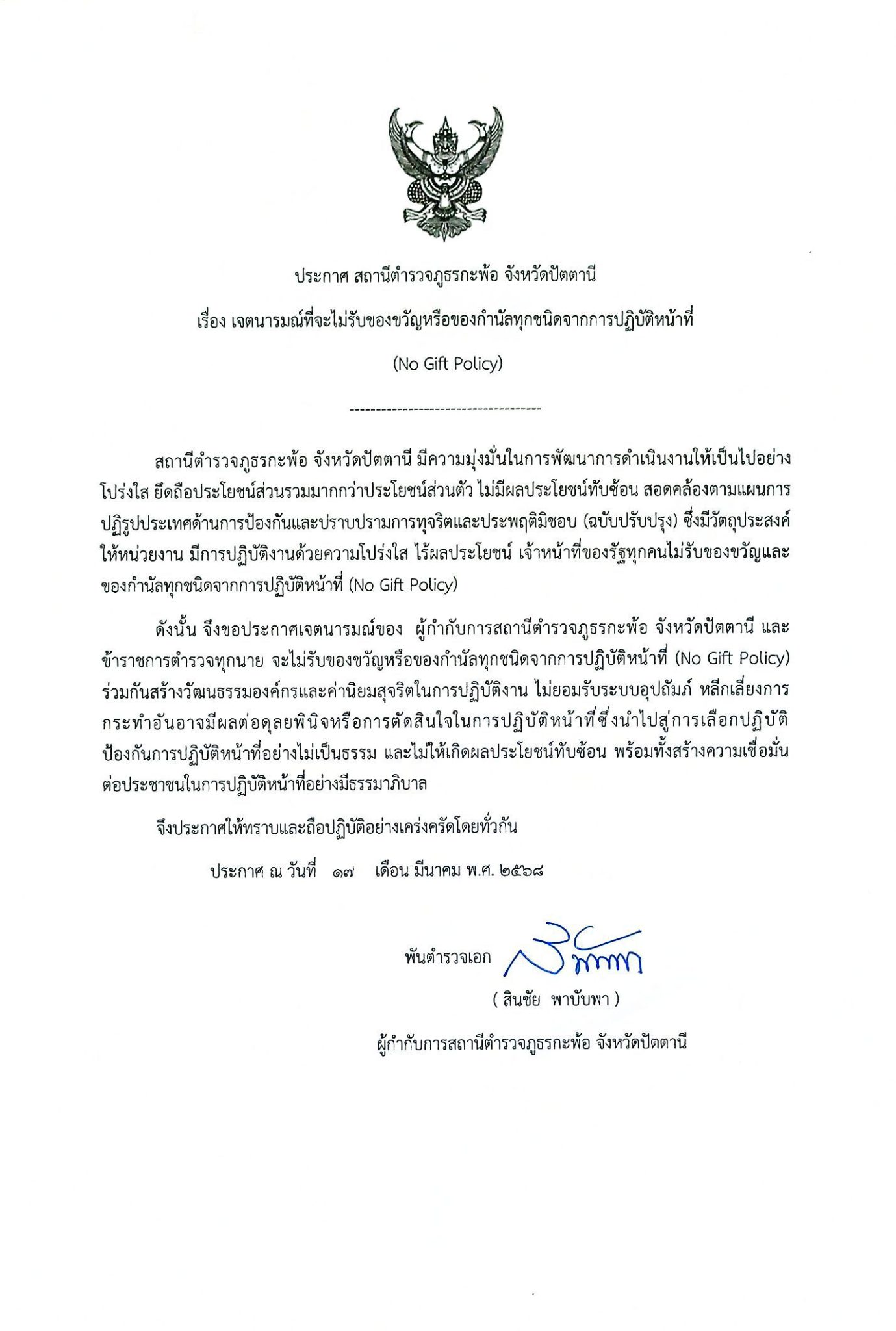 สภ.กะพ้อ จว.ปัตตานีเรียน ผู้บังคับบัญชาวันนี้(7ธค2567)เวลา10.00 น.พ.ต.อ.สินชัย พาบับพา ผกก.สภ.กะพ้อ …