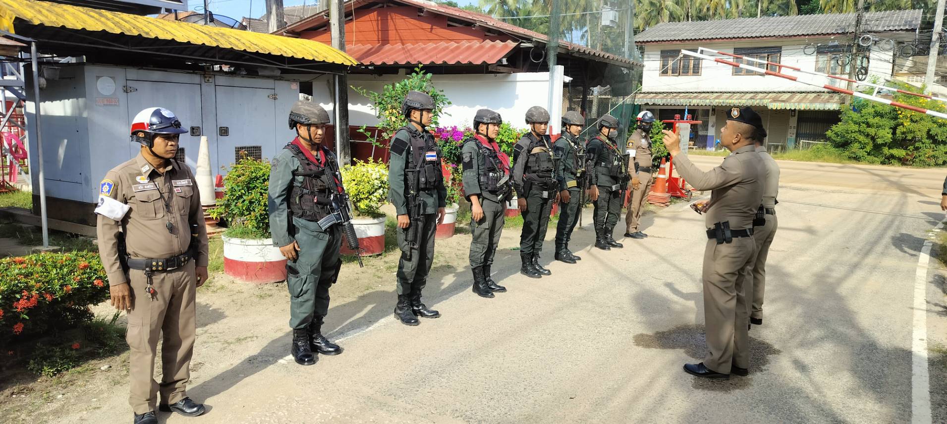 ตรวจความพร้อมของกำลังพล การแต่งกาย ชี้แจงภารกิจเน้นย้ำกำลังพลปฏิบัติด้วยความไม่ประมาท ก่อนเดินทางไปสนับสนุนในภารกิจการรักษาความปลอดภัย ณ สภ.สายบุรี