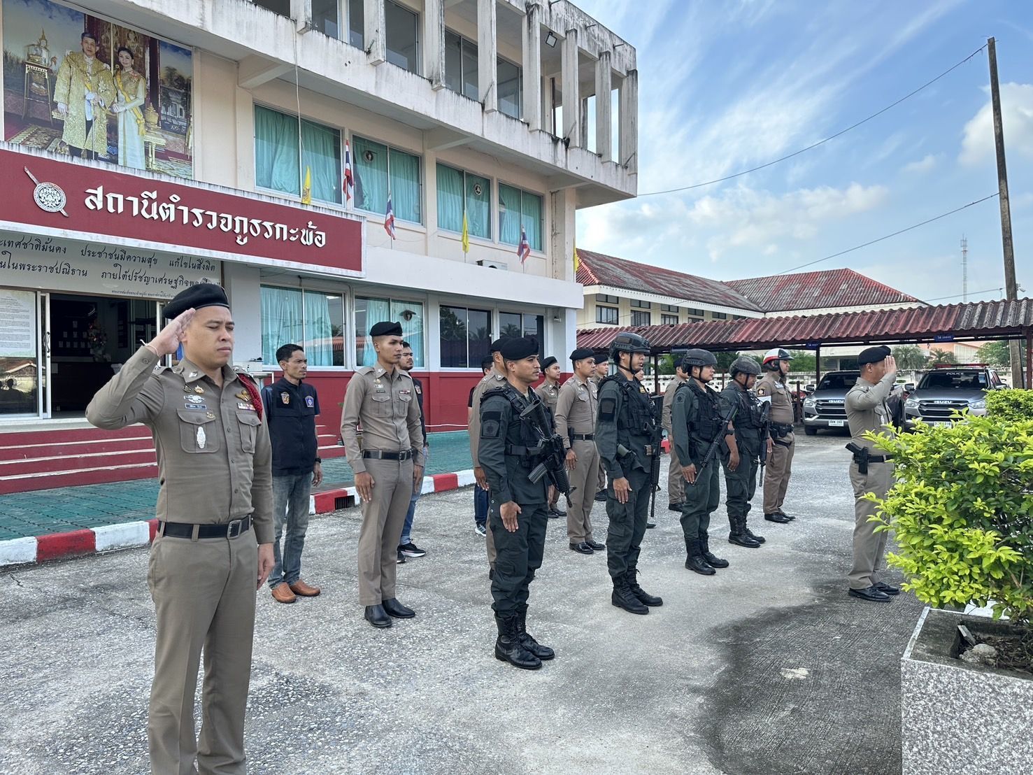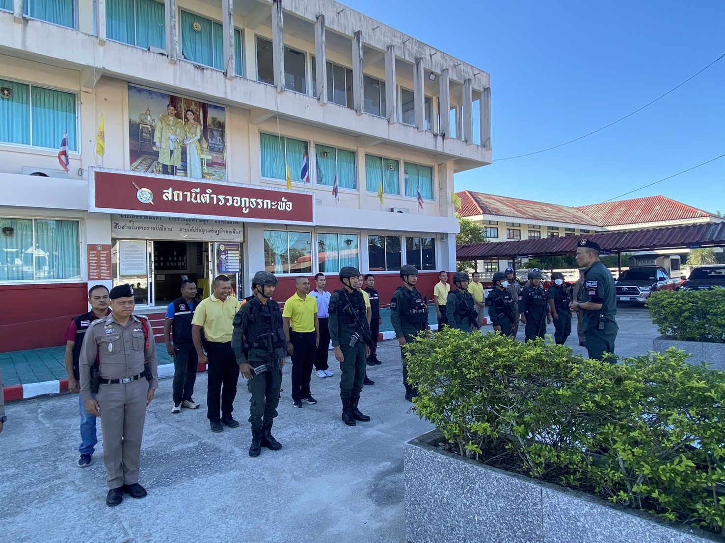สวป.สภ.กะพ้อฯพร้อมด้วย กพ.ชป.จู่โจมปรับปรุงภูมิทัศน์ บริเวณหน้าสถานีตำรวจเหตุการณ์ทั่วไปปกติ