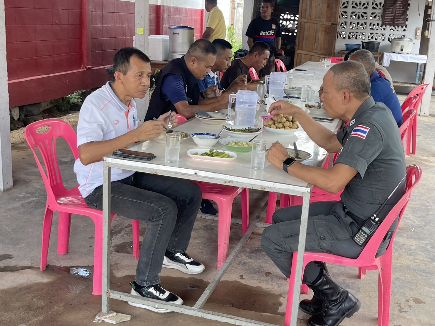 ร่วมกันรับประทานอาหารกลางวัน ณ โรงครัวกะพ้อ ตามโครงการอาหารกลางวันของสถานีตำรวจภูธรกะพ้อ