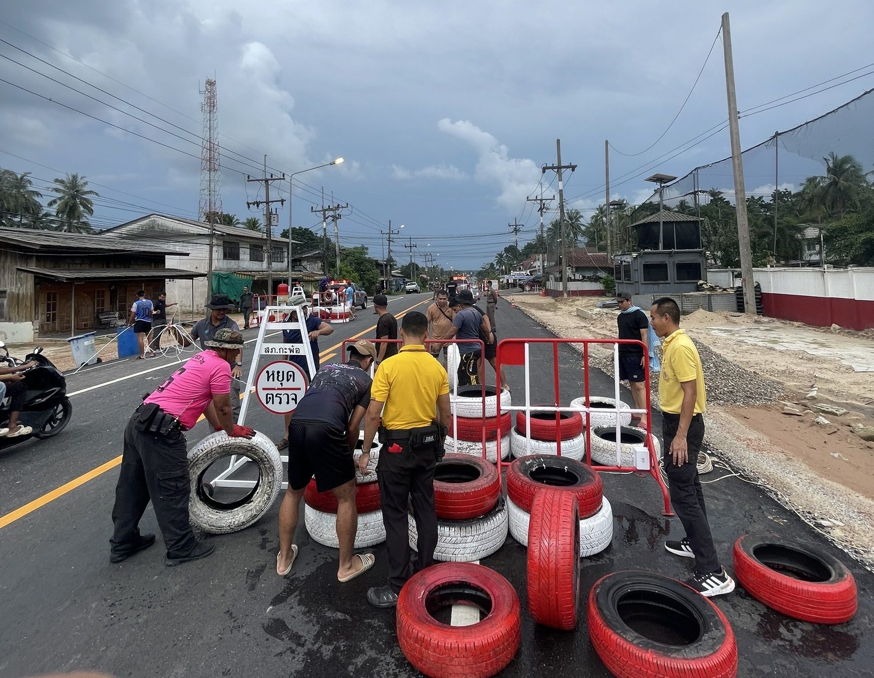 ข้าราชการตำรวจในสังกัดร่วมกันพัฒนาที่ตั้ง ติดตั้งแผงกั้น ป้ายไฟ และล้อยาง ให้พร้อมใช้งาน