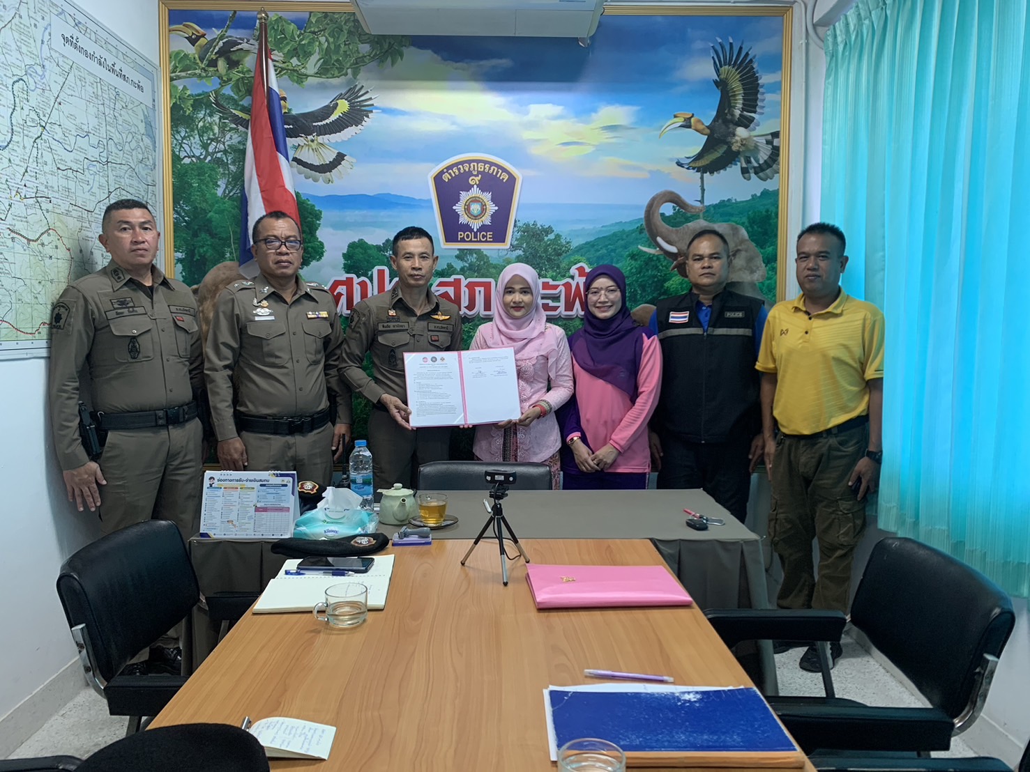 ร่วมเซ็นลงนามบันทึกข้อตกลงความร่วมมือ( MOU )ระหว่าง สภ.กะพ้อ กับ โรงเรียนบ้านบาโงยือแบ็ง ในโครการโรงเรียนสีขาว ครูแดร์