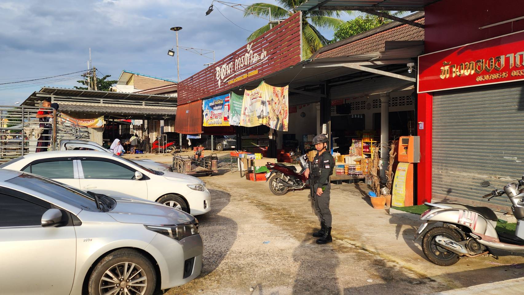 สภ.กะพ้อฯออกตรวจสอบ ตรวจเยี่ยมประชาชน ประชาสัมพันธ์ ร้านสะดวกซื้อ ร้านทอง ปั๊ม ปตท. ให้ตรวจสอบความผิดปกติหน้าร้านและในร้าน สังเกตุบุคคลแปลกหน้า สิ่งของแปลกปลอม มีเหตุด่วนสามารถแจ้งเข้า สภ.ได้ทันที
