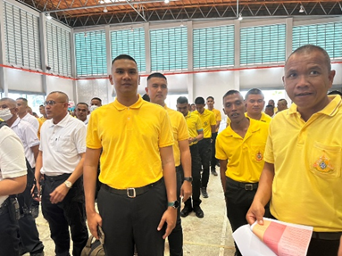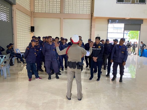 ร่วมปล่อยแถวตรวจความพร้อมกำลังพลการแต่งกายอุปกรณ์ที่จำเป็นและชี้แจงภารกิจ กำลังพลที่ทำหน้าที่ ถปภ. ณ สนามกีฬาเนินขุมทองเรียน ผู้บังคับบัญชา