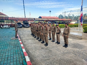 ลงแถวเคารพธงชาติ แจ้งข้อราชการ และการข่าวที่สำคัญ กำชับ/ตร.ทุกนายให้เพิ่มความระมัดระวังเป็นกรณีพิเศษ ในการปฏิบัติหน้าที่และทำภารกิจส่วนตัว