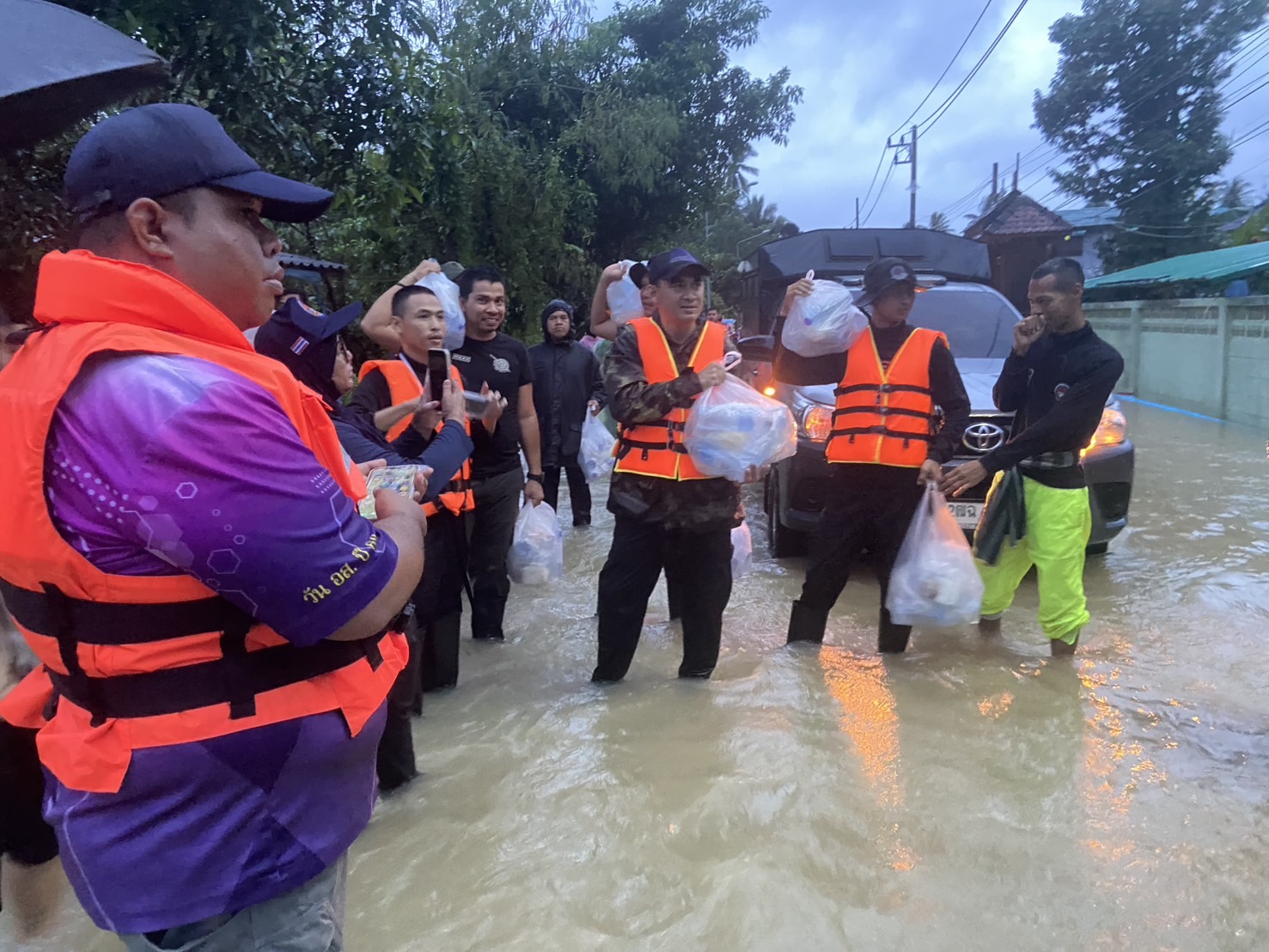ร่วมมอบข้าวกล่อง อาหารแห้ง ขนม และน้ำดื่มให้กับประชาชนที่ไม่สามารถออกมารับอาหารได้ ซึ่งพื้นที่ดังกล่าวน้ำยังท่วม เพื่อบรรเทาความเดือดร้อนและเป็นขวัญกำลังใจให้กับประชาชนที่ได้รับผลกระทบจากน้ำท่วม