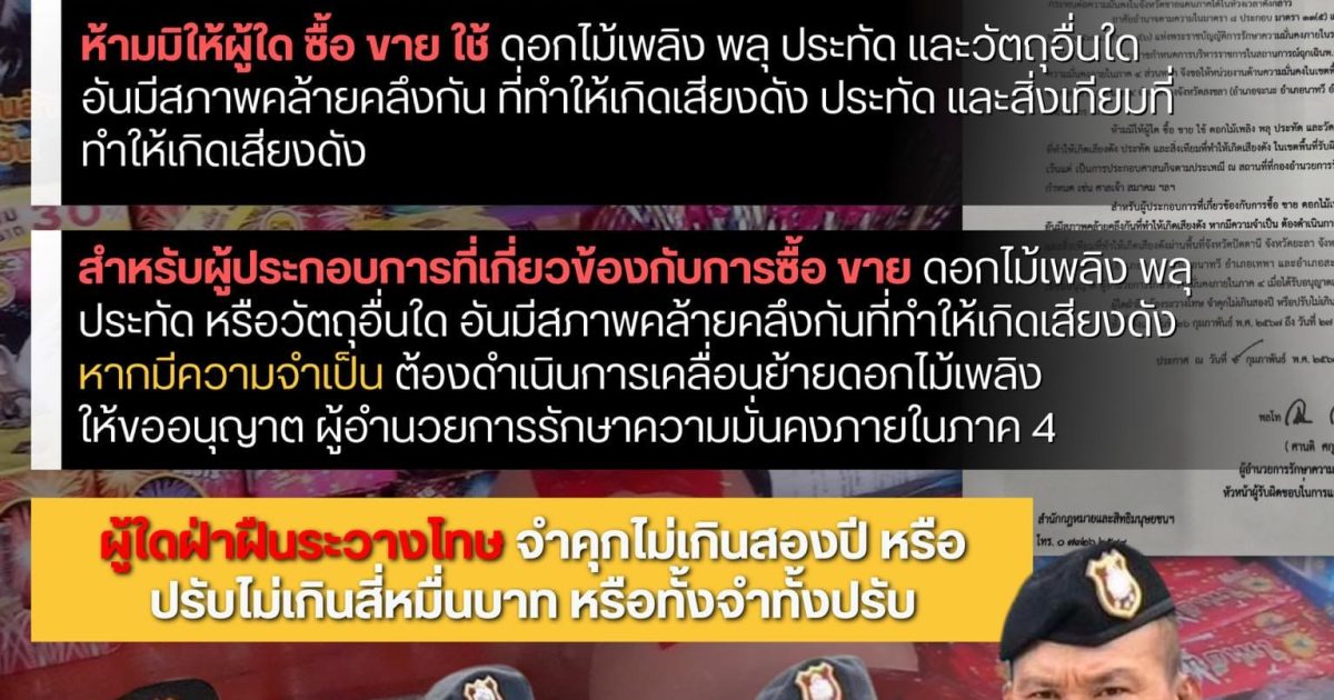 สำหรับผู้ประกอบการที่เกี่ยวข้องกับการซื้อ ขาย ดอกไม้เพลิง ประทัด และสิ่งเทียมที่ทำให้เกิดเสียงดัง หากมีความจำเป็น ต้องดำเนินการเคลื่อนย้ายดอกไม้เพลิง ประทัด และสิ่งเทียมที่ทำให้เกิดเสียงดัง ผ่านพื้นที่ในห้วงเดือนรอมฎอน ให้ขออนุญาต ผู้อำนวยการรักษาความมั่นคงภายในภาค 4 เมื่อได้รับอนุญาตแล้ว ให้สามารถทำการเคลื่อนย้ายได้