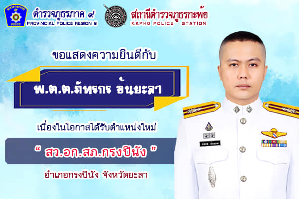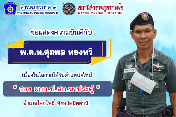 ขอแสดงความยินดี กับข้าราชการตำรวจ สถานีตำรวจภูธรกะพ้อ ได้รับการแต่งตั้งให้ดำรงตำแหน่งใหม่ ดังนี้