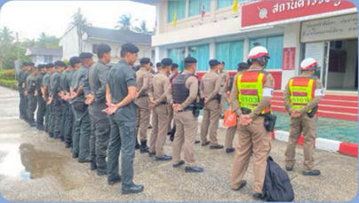 ตรวจความพร้อมของกำลังพล การแต่งกาย ชี้แจงภารกิจเน้นย้ำกำลังพลปฏิบัติด้วยความไม่ประมาท ก่อนเดินทางไปสนับสนุนในภารกิจการรักษาความปลอดภัย ณ สภ.สายบุรี ส่วนกำลังพลอยู่เตรียมพร้อม ณ ที่ตั้งของหน่วย