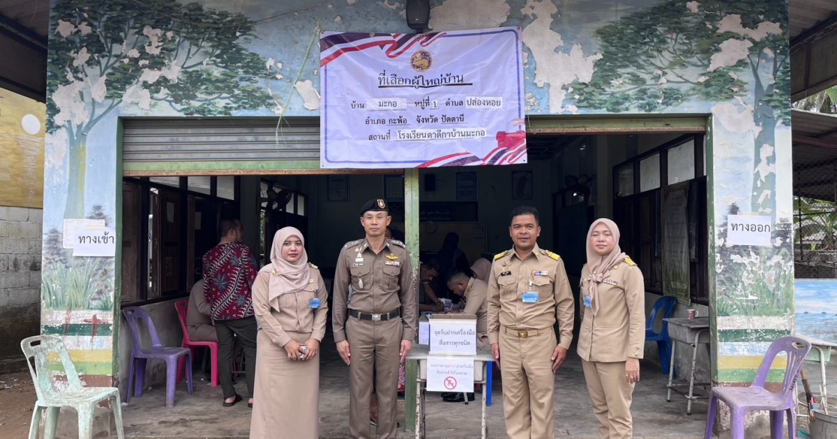 ตรวจเยี่ยมและดูแลความเรียบร้อย ในการเลือกผู้ใหญ่บ้าน บ้านมะกอ ม.๑ ต.ปล่องหอย อ.กะพ้อ จ.ปัตตานี ณ โรงเรียนตาดีกาบ้านมะกอ