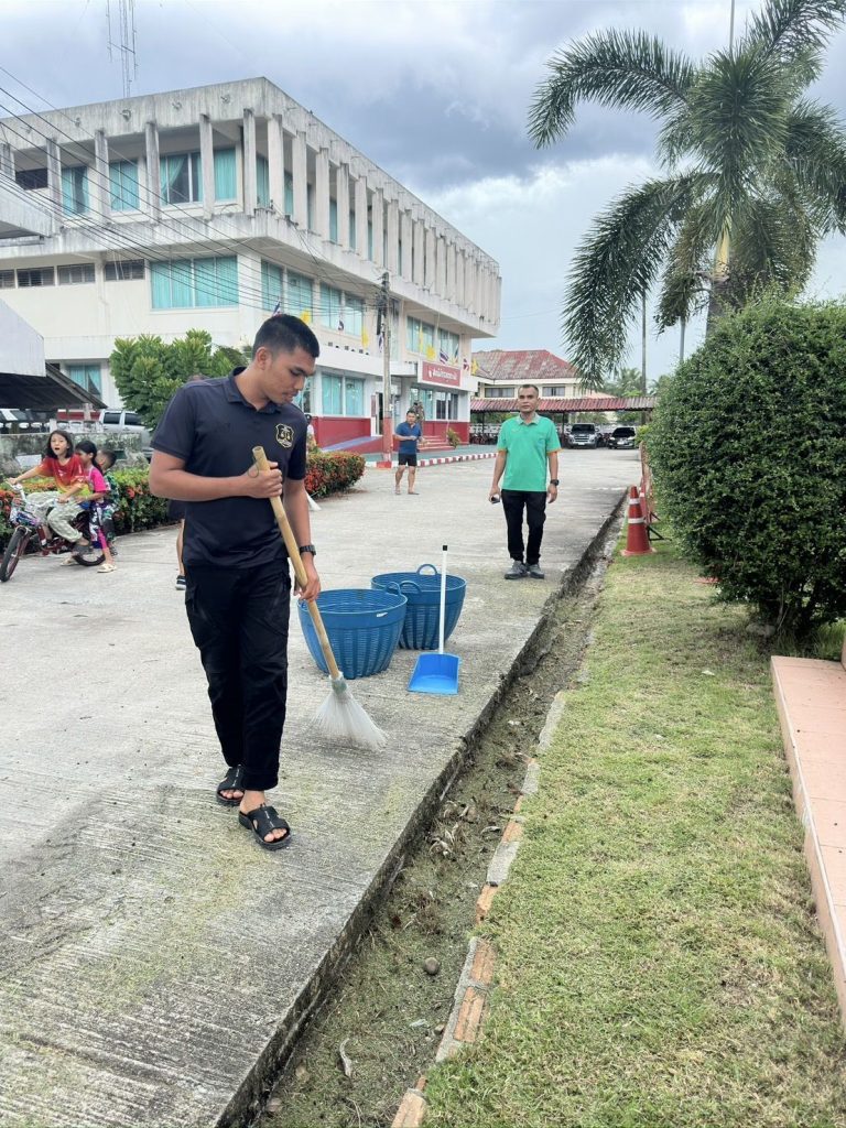 - กวาดขยะตัดแต่งกิ่งไม้ ปรับปรุงภูมิทัศน์บริเวณหน้า สภ.ฯ