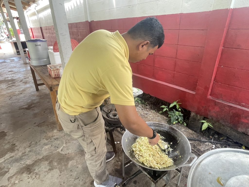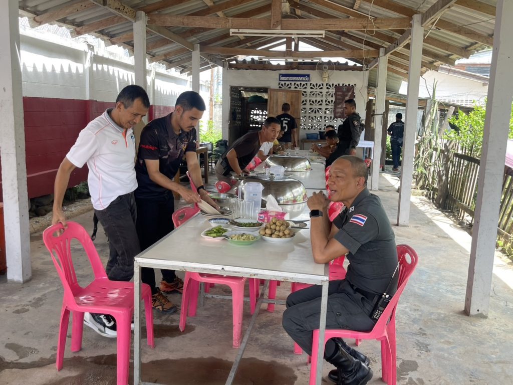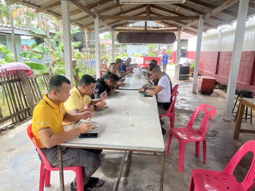 ผู้บังคับบัญชา และข้าราชการตำรวจภูธรกะพ้อ ร่วมกันรับประทานอาหารกลางวัน ณ โรงครัวกะพ้อ ตามโครงการอาหารกลางวันของสถานีตำรวจภูธรกะพ้อ