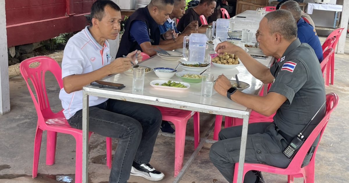 ผู้บังคับบัญชา และข้าราชการตำรวจภูธรกะพ้อ ร่วมกันรับประทานอาหารกลางวัน ณ โรงครัวกะพ้อ ตามโครงการอาหารกลางวันของสถานีตำรวจภูธรกะพ้อ