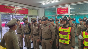 ร่วมปล่อยแถวตรวจความพร้อมกำลังพลการแต่งกายอุปกรณ์ที่จำเป็นและชี้แจงภารกิจ กำลังพลที่ทำหน้าที่ รปภ.นายกฯ สภ.กะพ้อ ก่อนเดินทางไปรายงานตัวต่อ ผกก.สภ.สายบุรี ณ สภ.สายบุรี