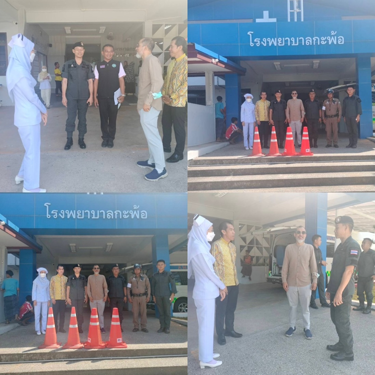 ผบ.มว.ฉก.นปพ.ปน.33 (กะพ้อ) ร่วมมอบกรวยจราจรให้แก่ โรงพยาบาลกะพ้อ โดยมี นพ.อภิศักดิ์ บินอะฮ์มัด ผอ.รพ.กะพ้อ และจนท.รพ.กะพ้อ เป็นผู้รับมอบ