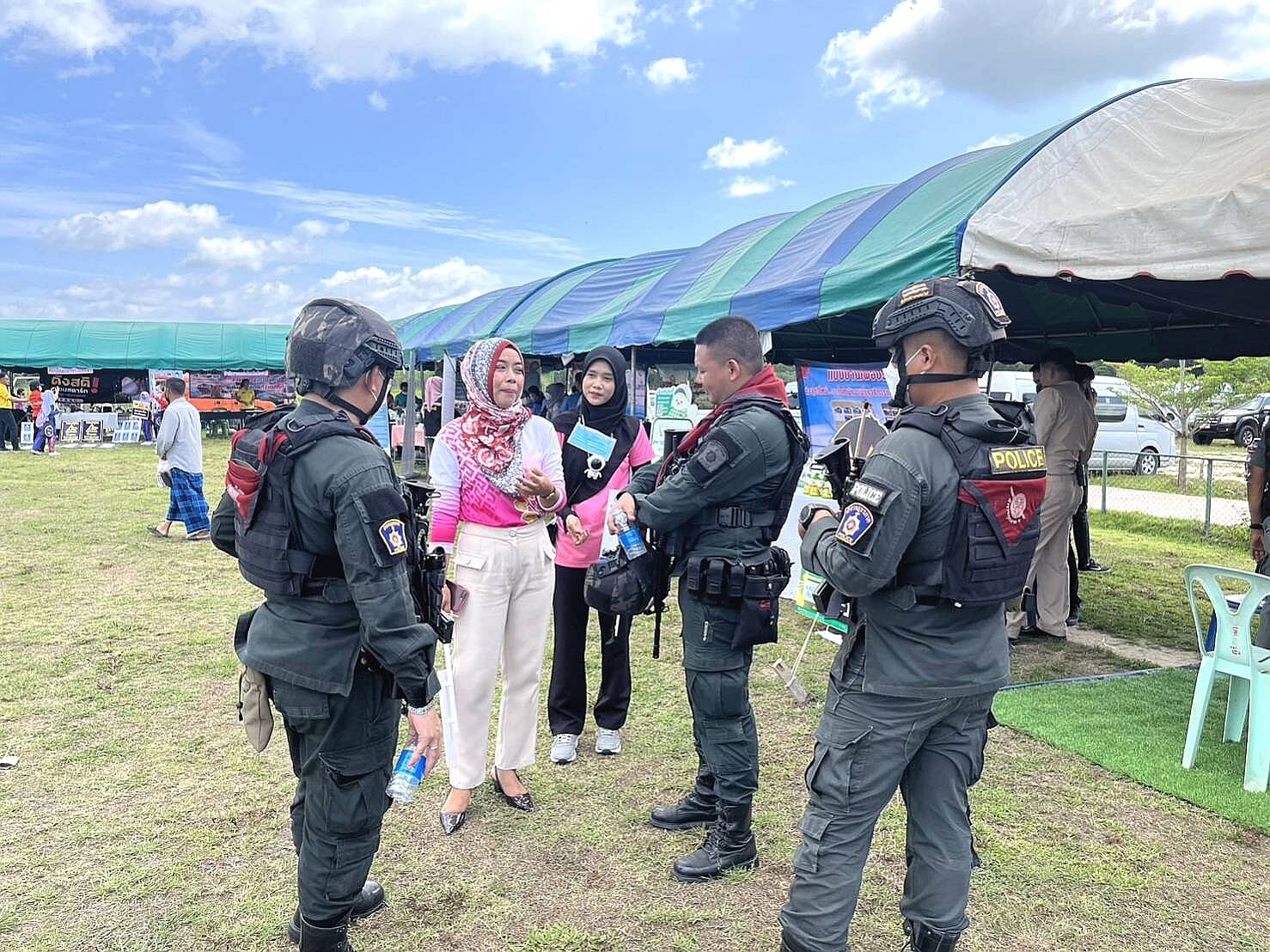 พ.ต.อ.เดชาวุธ เจ๊ะเต๊ะ ผกก.สภ.กะพ้อ ร่วมให้การต้อนรับ นางพาตีเมาะ สะดียามู ผวจ.ปัตตานี พร้อมคณะ และมอบหมายให้ พ.ต.ท.นิทัศน์ บุญวรรณโณ รอง ผกก.ป.สภ.กะพ้อ พ.ต.ท.ศุภพล ทองทวี สวป.สภ.กะพ้อ พร้อมด้วย ชป.จู่โจม ๑ สภ.กะพ้อ และ จนท.จราจร ดูแลความปลอดภัย พร้อมอำนวยความสะดวกด้านการจราจร ให้แก่ ผวจ.ปัตตานี และคณะ ที่เดินทางมา เพื่อออกหน่วยให้บริการประชาชนในพื้นที่ห่างไกล ตามโครงการการจัดหน่วยบริการ “จังหวัดเคลื่อนที่” ประจำปี ๒๕๖๖ พบปะเยี่ยมเยี่ยนและรับฟังปัญหาความเดือดร้อนของพี่น้องประชาชนในพื้นที่ อ.กะพ้อ จว.ปัตตานี
