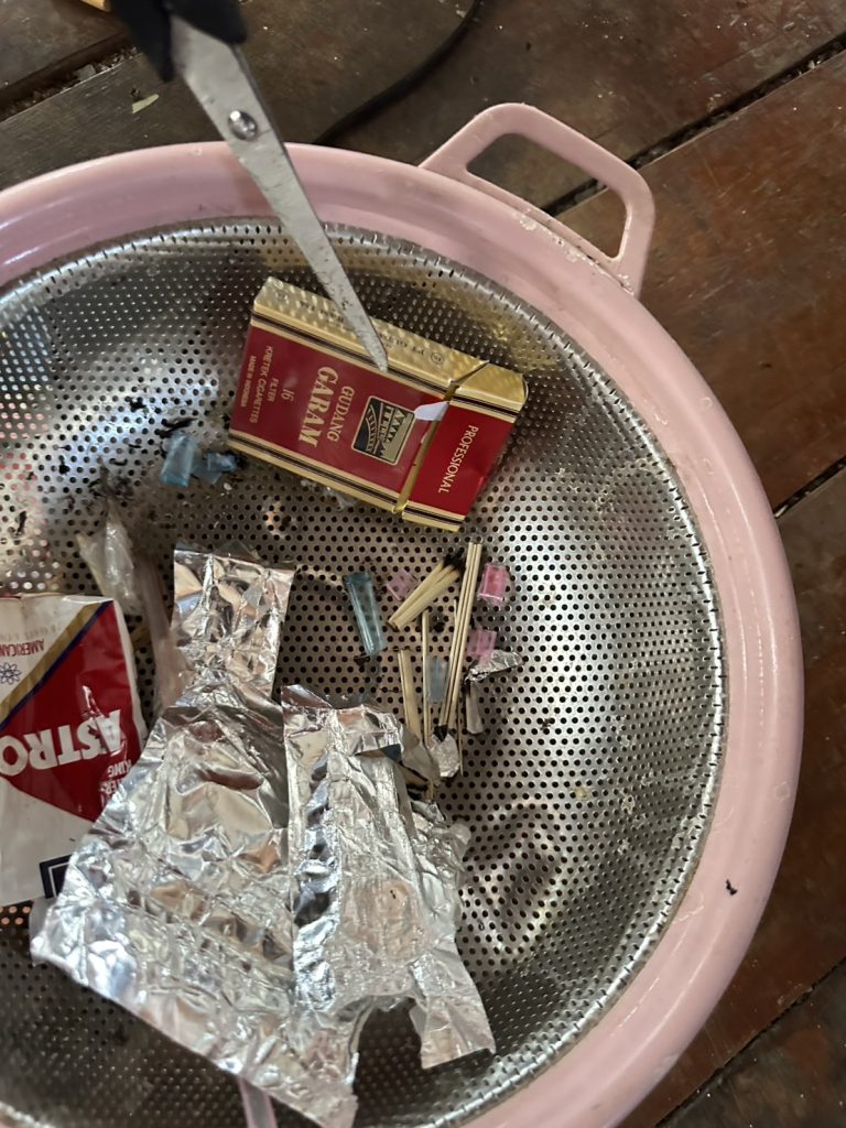 2. เวลา 13:00 น. ชป.สืบสวน สภ.กะพ้อ ออก ว.4 ปิดล้อมตรวจค้นแหล่งมั่วสุมยาเสพติดของกลุ่มวัยรุ่น ณ บ้านเลขที่ xxxx ต.ปล่องหอย อ.กะพ้อ จว.ปัตตานี โดยมีนายยุ(นามสมมุติ) แสดงตนเป็นเจ้าของบ้านพร้อมเป็นผู้นำตรวจค้น