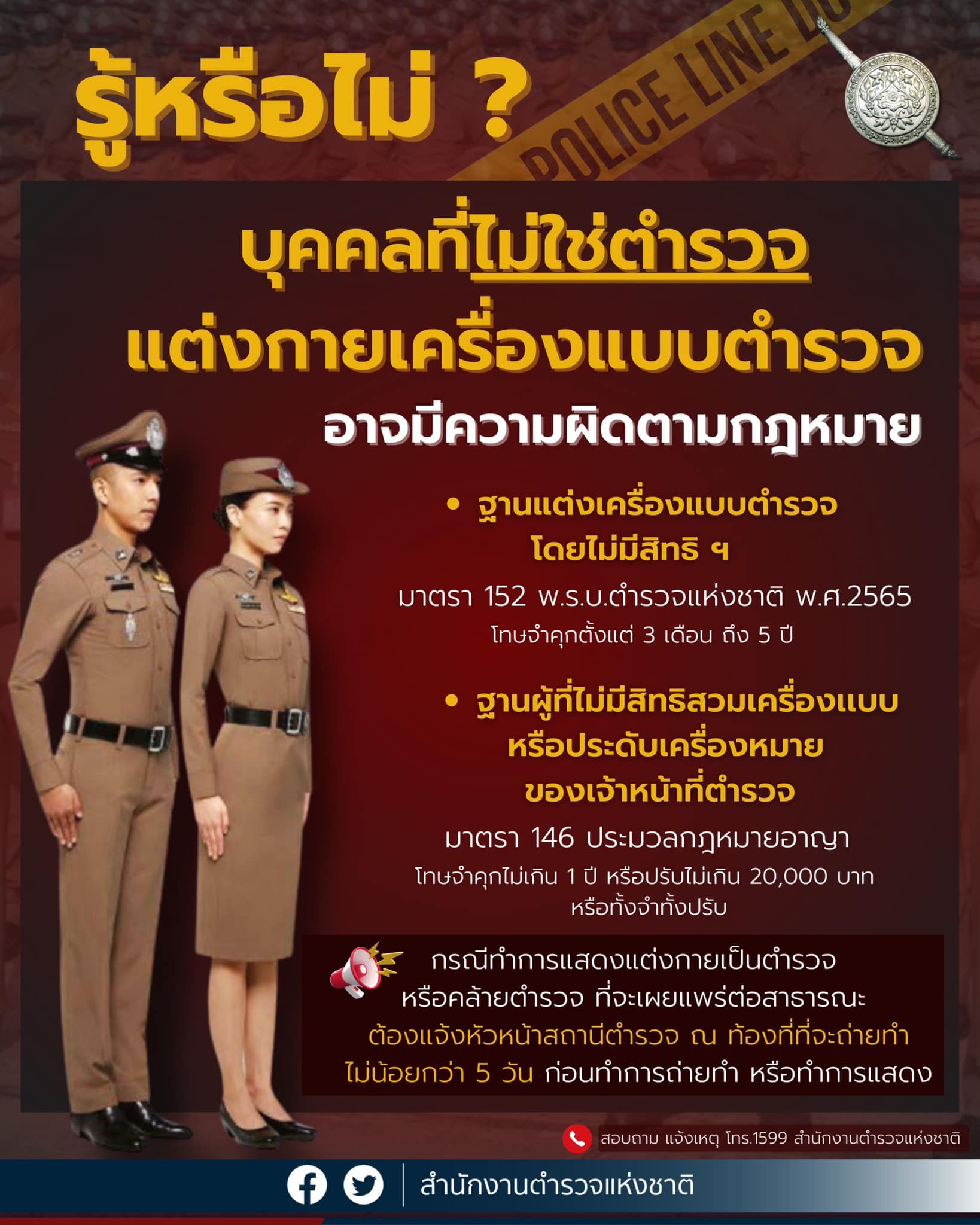 หรือไม่ ? บุคคลที่ไม่ใช่ตำรวจ แล้วแต่งกายเครื่องแบบตำรวจ อาจมีความผิดตามกฎหมาย กฎหมายต้องรู้ .. กรณี