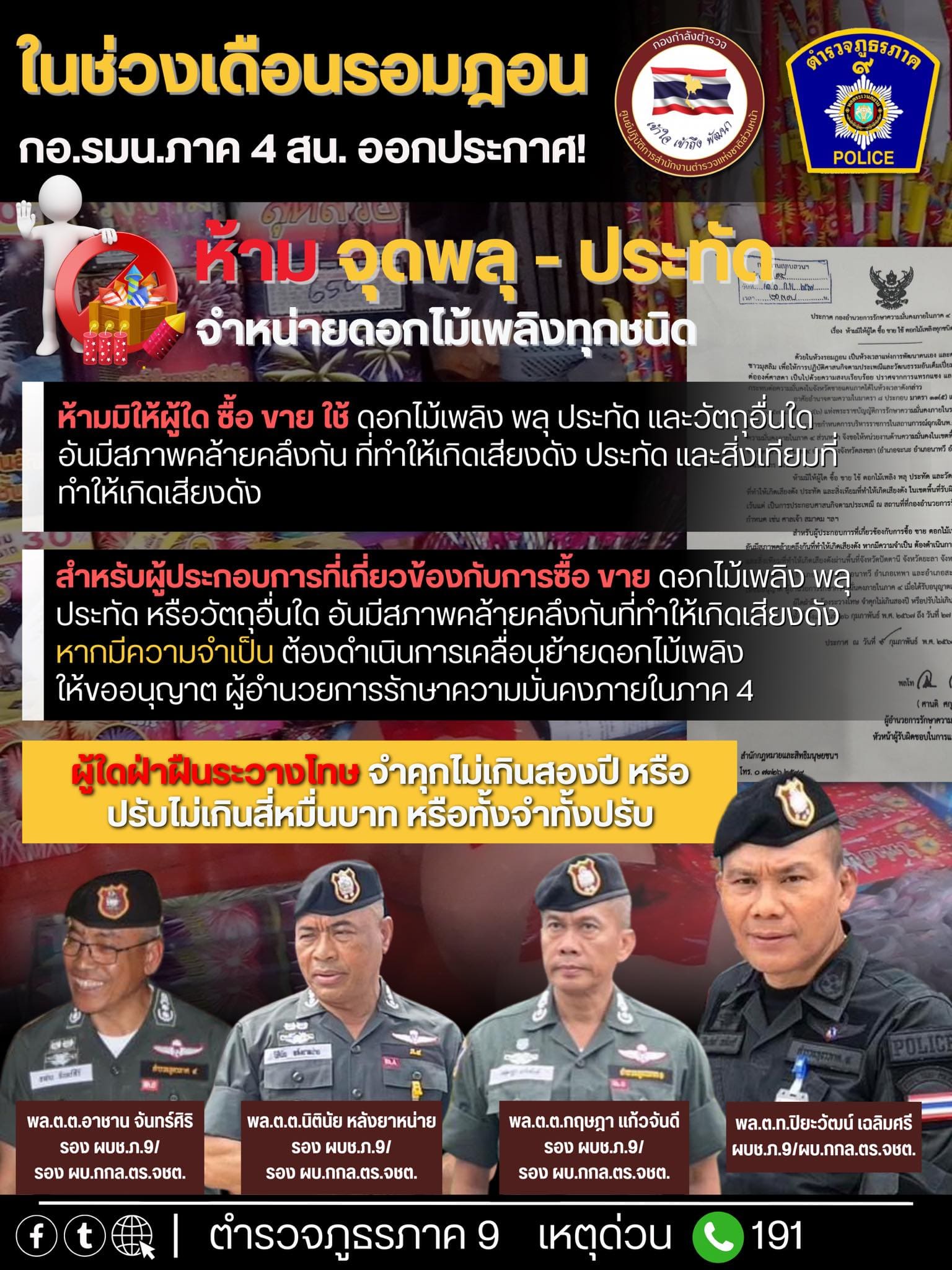 ประกาศ กอ.รมน.ภาค 4 ส่วนหน้า ขอความร่วมมือห้ามซื้อ-ขายประทัด ในช่วงเดือนรอมฎอน ขอความร่วมมือพี