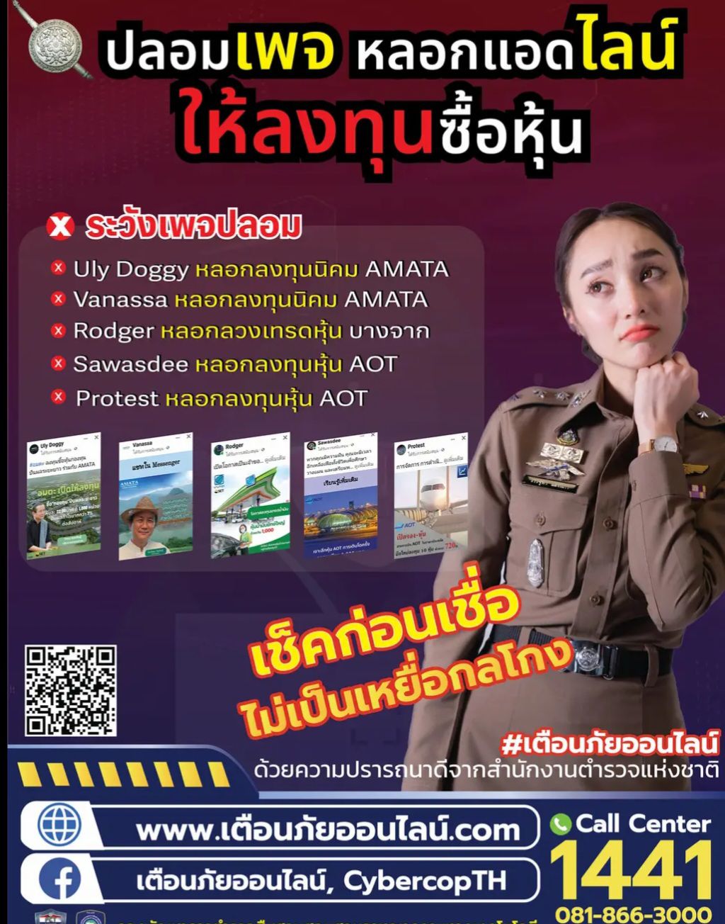 เตือนภันออนไลน์ เพจปลอมหลอกแอดไลน์ ให้ลงทุนซื้อหุ้น