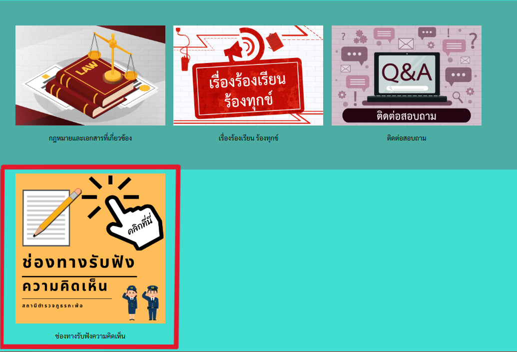 เมนู ช่องทางการถาม-ตอบ/รับฟังความคิดเห็น อยู่บริเวณหน้าแรกของเว็บไซต์
